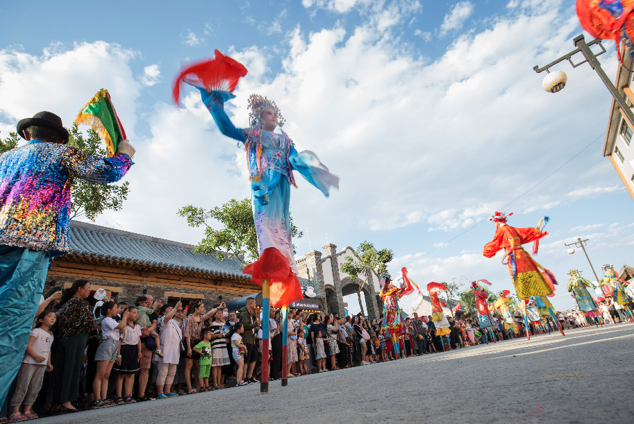 忻州古城東大街的文藝表演踩高蹺。新華網發(fā) 侯效平 攝