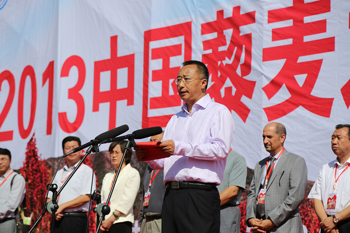 武祥云在靜樂藜麥豐收節(jié)致辭。受訪者供圖 2013年5月,稼祺藜麥公司在靜樂縣娑婆鄉(xiāng)主辦了“藜麥播種節(jié)”,9月又主辦了“藜麥豐收節(jié)”,云南、甘肅、內(nèi)蒙古等地客商慕名而來,紛紛向“藜麥王”咨詢請教,并有意向訂購種子、引進(jìn)種植技術(shù)。再加上新聞媒體的報(bào)道,靜樂藜麥從此聲名大噪,甚至一些農(nóng)戶收獲的藜麥被當(dāng)成種子搶購,價(jià)格飆升到20至30元1斤。大會村一對年過七旬的老農(nóng)民夫婦,只種了1畝藜麥,產(chǎn)量達(dá)到570斤,收入了3000多元,老人激動地說,“種了一輩子地,從來也沒掙過這么多錢!”這種喜悅和自豪不僅老百姓體會到了,武祥云更是感到無比滿足和感動。能造福百姓,讓大家從傳統(tǒng)的土地上依靠“洋莊稼”藜麥增收獲利,實(shí)現(xiàn)脫貧致富的目標(biāo),這個(gè)路子是走對了。