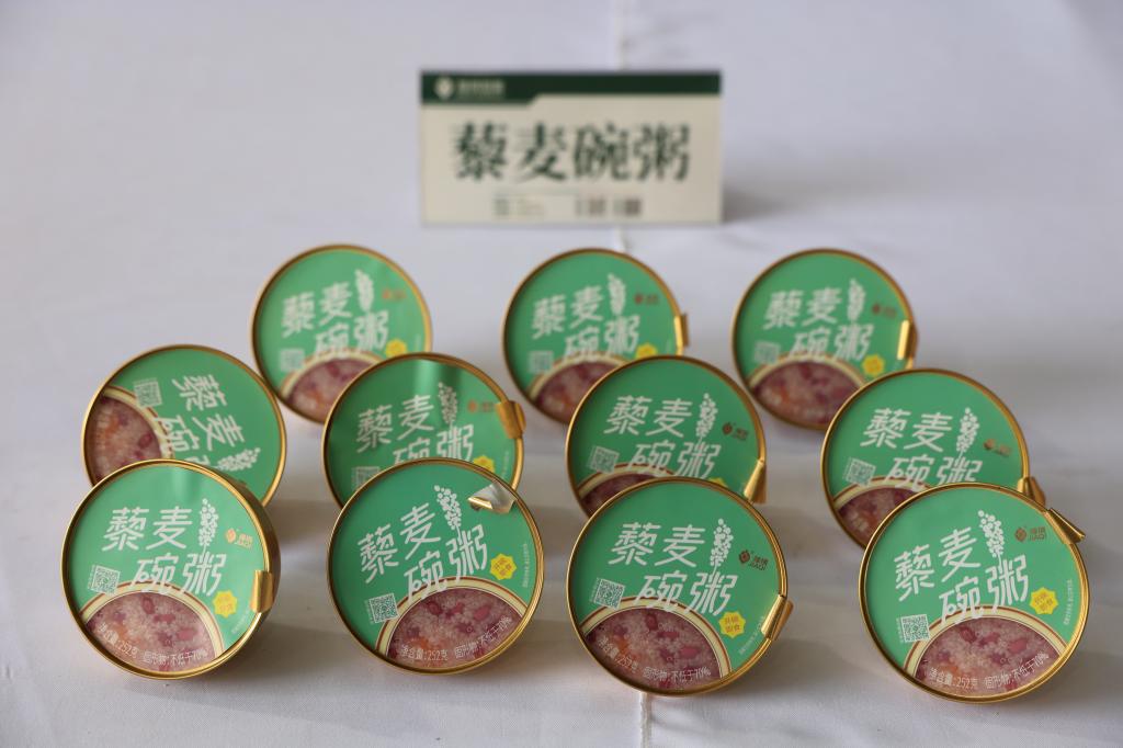 稼祺藜麥產(chǎn)品。張存良 攝 稼祺藜麥米、藜麥粉、碗粥、掛面、蛋白棒、白酒等系列產(chǎn)品不斷推向北京、上海等國內(nèi)主流市場,淘寶、京東、今日頭條、抖音、小紅書等線上電商平臺和線下超市、農(nóng)產(chǎn)品特產(chǎn)店、肯德基門店、烘焙店等都有銷售。HACCP體系和產(chǎn)品有機(jī)認(rèn)證的通過,是產(chǎn)品品質(zhì)的保障,“中國氣候好產(chǎn)品”是藜麥與靜樂自然和諧的體現(xiàn)。盡管如此,武祥云并沒有止步于此。 扎根于山區(qū)小縣,胸懷宏大目標(biāo),“稼祺”追求的終極愿景是讓藜麥成為更多人的“新主糧”。事實(shí)上,因其自身的優(yōu)異特質(zhì),藜麥被不少專業(yè)人士看好,特別是經(jīng)過精細(xì)加工的免洗免泡的白藜麥米,不只是用來少量搭配添加的——白藜麥米的適口性非常好,可以用來單獨(dú)煮粥和燜飯,再加上育種對于提高絕對產(chǎn)量的賦能,藜麥具備了成為未來“新主糧”的潛質(zhì)。
