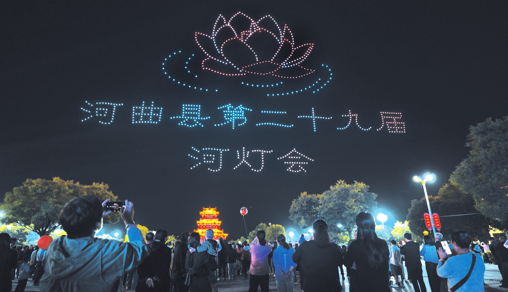 為期三天的無人機表演,創(chuàng)新采用3D動態(tài)編隊技術,通過40組高精度畫面切換,將河曲的地理標志、文化符號與時代精神深度融合,實現(xiàn)“一幕一主題、幀幀皆故事”的沉浸式體驗,以“科技+文旅”讓市民和游客領略大美河曲的獨特魅力。市民張一婷說:“能在家門口看到這么高水平的無人機表演,挺自豪的。這種創(chuàng)新的‘文化表達’方式將我們家鄉(xiāng)的故事用高科技手段‘寫’在了夜空這張畫卷上。這說明家鄉(xiāng)的發(fā)展不只在經(jīng)濟方面,更是一種文化上的自信與創(chuàng)新。河燈與無人機燈光天地呼應,是傳統(tǒng)與現(xiàn)代的完美融合?!?/p>