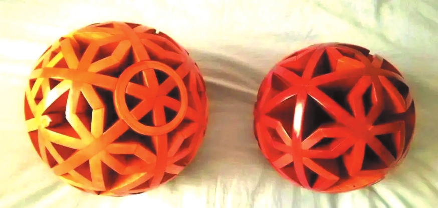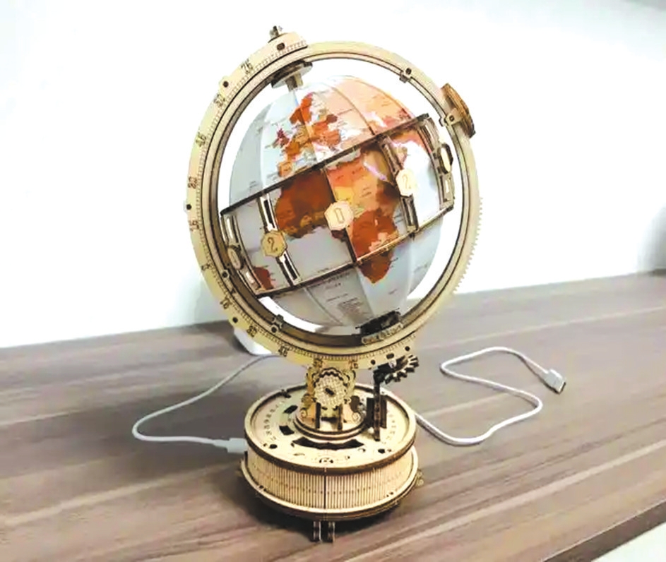 “沒用一顆釘子、一滴膠水,我們利用了榫卯技藝,讓108塊形狀各異的木構(gòu)件緊密連接,構(gòu)成一個(gè)鏤空的地球,祈盼世界團(tuán)結(jié)、人類和平?!薄堕久挠钪妗肪巹 ⑿弥萃鯛栁耐妫敯噫i、孔明鎖)(以下簡(jiǎn)稱“王爾文玩”)傳統(tǒng)木作技藝非物質(zhì)文化遺產(chǎn)代表性傳承人趙永功說(shuō)。