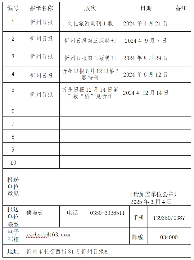 經(jīng)忻州日報(bào)社編委會(huì)研究決定,以下作品擬推薦申評第34屆山西新聞獎(jiǎng),現(xiàn)予以公示。有反對意見者,請將反對意見書面報(bào)至統(tǒng)計(jì)考核部。