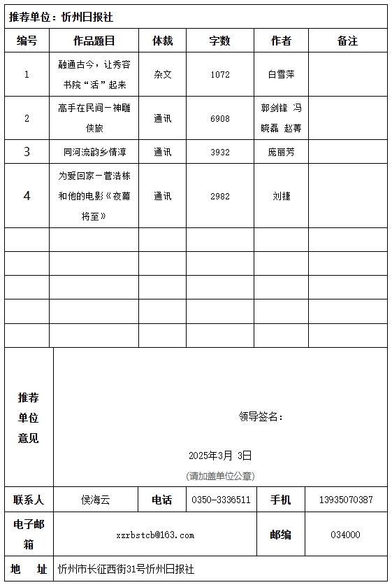 推薦單位:忻州日報(bào)社 |