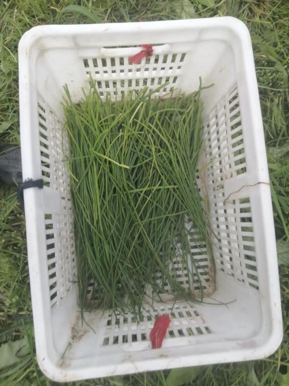 在右玉縣威遠鎮(zhèn)小香蔥種植基地,連片種植的小香蔥長勢喜人。三五成群的農(nóng)民穿著雨鞋,蹲在地里用小鐮刀割蔥,割下一把后把雜草撿出來,把黃尖掐掉,干凈整齊地擺進筐子里。