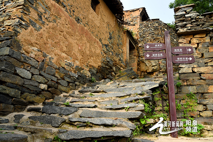 黃河新聞網陽泉訊(記者秦銘明)我們的汽車沿著高低起伏、曲折蜿蜒的太行山1號國家觀光旅游公路在青山間穿梭,飛鳥時不時被驚起,幽靜神秘的太行山宛如輕紗遮面的佳人,靜靜佇立。公路邊、山腰中、泉水旁,黃墻黛瓦的民居錯落有致,青石綠苔的石階縱橫交錯,一個掩映在青山綠水中,坐落在綠樹芳草間的村落“駱駝道村”出現在眼前。
