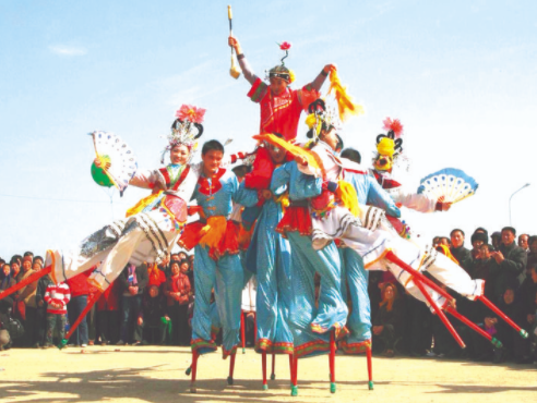 高蹺俗稱“拐子”,因舞蹈時腳踩木蹺而得名。木蹺高度不一,有的低至一尺,有的高達(dá)一丈五尺,不過一般多為四五尺。高蹺的表演形式有單拐、雙拐,亦有三人四拐,其中舞者多扮演某個古代神話或歷史故事中的人物,服飾多模仿戲曲行頭,常用道具有扇子、手絹、木棍、刀槍等。高蹺有文高蹺、武高蹺之分,文高蹺是用弦樂或吹鼓樂伴奏,邊走邊舞,變換著各種隊(duì)形;武高蹺則用打擊樂伴奏,以表演特技為主。(小編綜合整理)