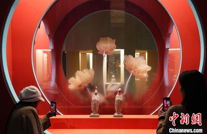 1月22日,“四海一堂春——乙巳蛇年新春文化展”在中國國家博物館開幕,圖為展出的唐代彩繪生肖龍?zhí)召?、蛇陶俑?中新社記者 趙文宇 攝 因應蛇年,此次展覽專門將位于“古代中國”展廳的明星文物婦好鸮尊調(diào)入:細看鸮尊雙翅部位,各裝飾有一條盤曲狀的蛇,蛇首如同桃心形狀,蛇身裝飾有連續(xù)的棱形雷紋。 據(jù)介紹,這是蛇類紋飾作為裝飾題材出現(xiàn)在商周青銅禮器之上的一種典型代表。半人半蛇的唐代“伏羲女媧像立幅”帛畫,印證著伏羲女媧這一久遠的文化信仰,通過絹帛畫形式在當時的吐魯番地區(qū)傳播,并吸引其他民族的崇奉。此外,展廳中充滿新春氛圍感的桃花洞釉燈籠瓶、白玉“天官賜?!迸?、“好酒”白釉盤等近200余件(套)館藏文物精品,書寫著對即將到來的蛇年新春的期待和祝福。 在農(nóng)歷北方小年當天開幕的,還有恭王府博物館從館藏年畫中甄選百余幅精品獻上的傳統(tǒng)木版年畫展。展覽分“祈福迎祥”“畫中有戲”“才子佳人”“節(jié)令風物”“燕京歲時”五大板塊,展示天津楊柳青、河北武強、山東楊家埠、陜西鳳翔、河南開封、蘇州桃花塢等重要年畫產(chǎn)地木版年畫,讓觀眾在恭王府古建院落間,感受傳統(tǒng)木版年畫的獨特韻味。