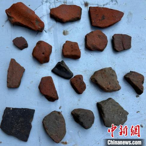 普查隊員對該文化遺存進行了詳細調(diào)查,發(fā)現(xiàn)該遺址分布范圍呈不規(guī)則弧形,面積約8300平方米。遺址區(qū)現(xiàn)為土豆、油菜等農(nóng)耕地,現(xiàn)場采集的陶片以夾砂紅陶片、夾砂紅陶塊為主,少量夾砂灰陶,其中包含夾砂紅陶器物口沿殘片2件、夾砂灰陶器物口沿殘片1件,未見彩陶、石器、骨器等。根據(jù)遺址所處地理環(huán)境和出土遺存分析,該遺址可能為一處新石器時代聚落遺址。