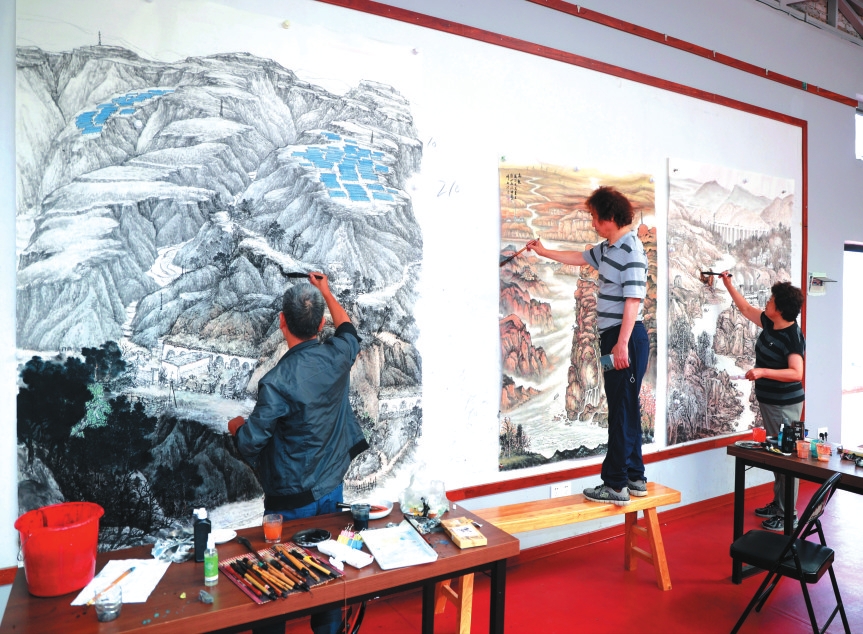 中國青綠山水畫院秘書長(zhǎng)金石已是二度造訪:“每次感受都不同,黃土高原總能滋養(yǎng)心靈,激發(fā)無盡創(chuàng)作靈感?!贝诵兴で閾]毫,創(chuàng)作了《雪域高原》《春曉趙家溝》《翠綠趙家溝》三幅作品,并已將“金秋趙家溝”主題納入明年的創(chuàng)作藍(lán)圖。