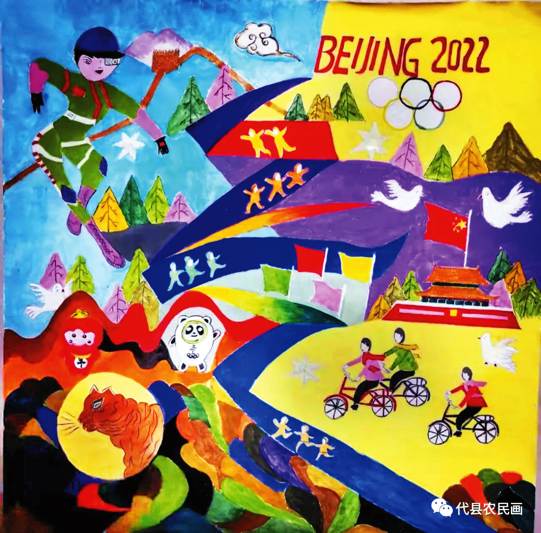 戴翠平《雁門關(guān)下護(hù)林忙》 在代縣農(nóng)民畫促進(jìn)會黨支部和主席團(tuán)的引領(lǐng)下,這些女畫家積極參與促進(jìn)會組織的各種交流和研討活動,不斷汲取藝術(shù)養(yǎng)分,深入探索研究農(nóng)民畫的創(chuàng)作技巧,使自己的繪畫技藝逐漸得到提升。她們特別注重借鑒代縣刺繡、面塑、剪紙等民間技藝的創(chuàng)作方法,從各種技藝當(dāng)中吸納有利于農(nóng)民畫創(chuàng)作的元素和營養(yǎng)。