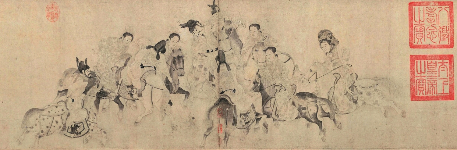 馬球的流行,也曾起到交流媒介的作用。遼代陳及之所繪《便橋會(huì)盟圖》,記錄了唐太宗和東突厥頡利可汗在渭水便橋會(huì)盟時(shí),大唐和突厥進(jìn)行馬球比賽的場(chǎng)景。唐中宗時(shí),吐蕃派使者迎接金城公主入藏,使團(tuán)中有馬球高手。彼時(shí)吐蕃請(qǐng)求與大唐比賽馬球,唐中宗派出的選手被吐蕃打敗,接著又派出當(dāng)時(shí)還是臨淄王的唐玄宗李隆基和嗣虢王李邕、駙馬楊慎交、駙馬武延秀等人再與吐蕃比賽,獲得勝利。據(jù)《封氏聞見記》載:“玄宗東西驅(qū)突,風(fēng)回電激,所向無(wú)前,吐蕃功不獲施?!?/p>