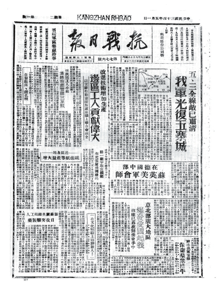 捧讀《重返滾燙筆尖》,回望當(dāng)年的崢嶸歲月。在那艱難困苦的年代,辦一份報紙,何其艱辛。1938年1月,八路軍120師揮師進(jìn)駐岢嵐,一份夾雜著紅軍長征爬雪山、過草地凜冽氣息的報紙亦隨之而至——這便是石印報《戰(zhàn)斗報》。彼時,晉西北地區(qū)活躍著多方進(jìn)步力量:從離石遷來的第二戰(zhàn)區(qū)民族革命戰(zhàn)爭戰(zhàn)地總動員委員會(簡稱“戰(zhàn)動總會”或“動委會”)、犧盟會、山西新軍及各群眾團(tuán)體等齊聚于此,岢嵐由此成為晉西北的政治中心,也是名副其實的文化中心。1937年至1939年間,駐岢嵐的各機(jī)關(guān)紛紛創(chuàng)辦刊物:二專署的《抗救周報》、暫一師的《長城報》、犧盟中心區(qū)的《大眾化》《抗戰(zhàn)生活》《黃河日報》《黃河畫刊》、保安司令部的《游擊三日刊》、三十五軍的《奮斗日報》、中共晉西北區(qū)黨委的《新西北報》……各類報刊如星火燎原,在敵后戰(zhàn)場點燃思想的火炬。配合報刊運轉(zhuǎn)與傳播,戰(zhàn)斗通訊社、民族革命通訊社晉西北分社、戰(zhàn)斗出版社等新聞機(jī)構(gòu)也在晉西北的靜樂、岢嵐等縣應(yīng)運而生,使忻州抗戰(zhàn)的聲音穿透硝煙,傳向更廣闊的敵后戰(zhàn)場。作為國共合作背景下極具代表性的進(jìn)步力量,戰(zhàn)動總會在辦報領(lǐng)域的實踐尤為亮眼。1938年10月,中共晉西北區(qū)委與晉西北農(nóng)救會等團(tuán)體在岢嵐聯(lián)合創(chuàng)辦《西北戰(zhàn)線》報(間日刊),刊行120多期后???;不久,動委會復(fù)刊《戰(zhàn)地通訊》,累計發(fā)行182期。與此同時,通俗易懂的《老百姓周報》(發(fā)行21期,每期1000余份)、生動直觀的《戰(zhàn)動畫報》相繼問世,《戰(zhàn)動周刊》亦同步推出。在戰(zhàn)動總會的帶動下,晉西北各縣動委會也紛紛以筆為武器宣傳抗日:五寨有《動員》,岢嵐有《抗日自衛(wèi)》《抗日建國》《戰(zhàn)斗》,寧武有《汾源怒吼》《抗戰(zhàn)救亡》,神池有《火花》,河曲有《雪恥》,忻縣有《戰(zhàn)聲》《農(nóng)村救亡》《大眾呼聲》,靜樂有《戰(zhàn)潮》,保德有《自衛(wèi)》《黃河》,偏關(guān)有《怒吼》……這些報刊種類繁多,規(guī)模各異,存續(xù)時長不一,卻都緊扣時局,以通俗曉暢的語言宣傳抗日主張,有力地鼓舞著軍民的抗戰(zhàn)信心。
