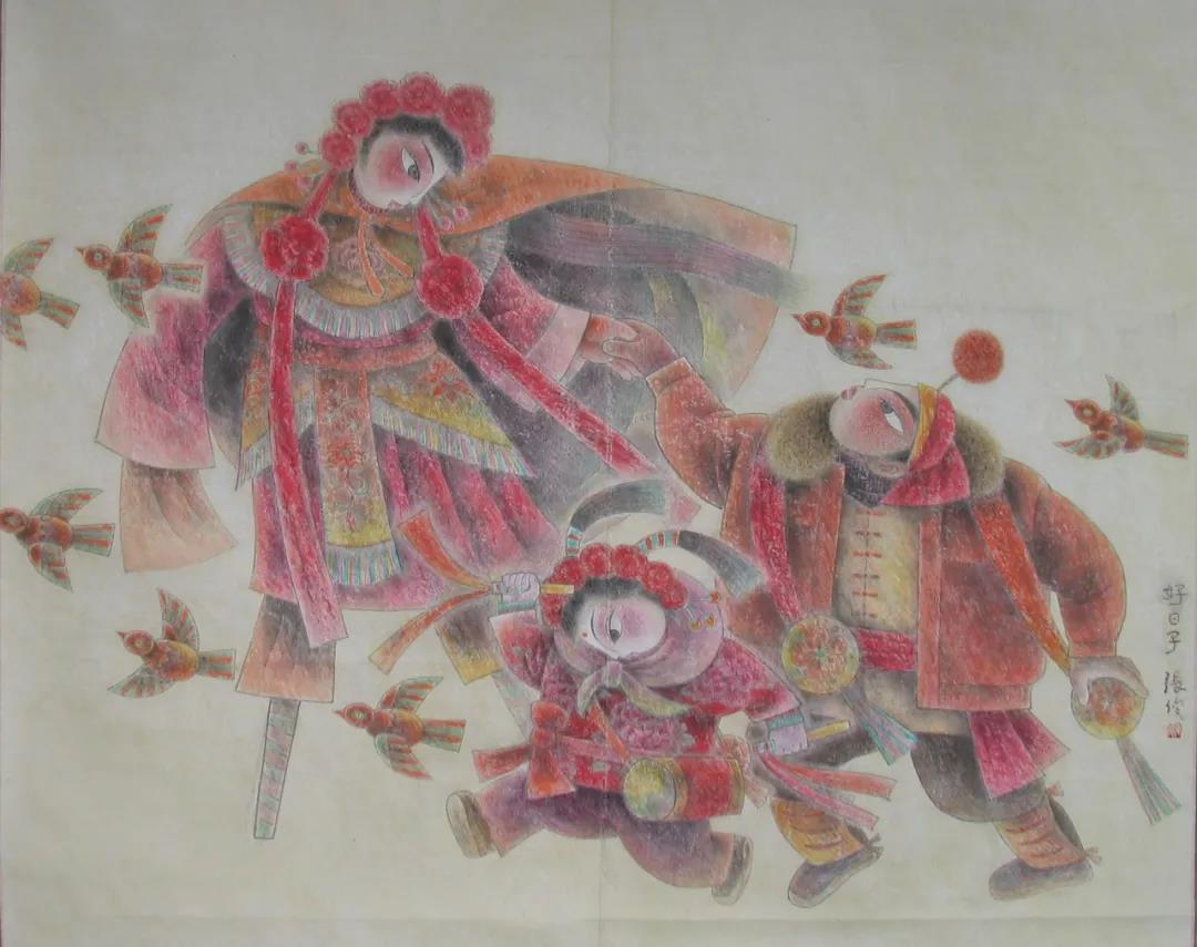 張俊這位畫家的畫就很有山西年畫的特點,又吸收了山西民間藝術(shù)的東西,很有特色。這不光在其他省很少見,就是放到全國的展覽上也很少見。共性中的個性就是藝術(shù)。