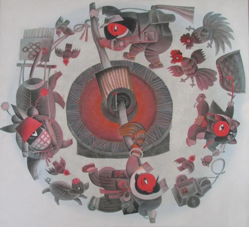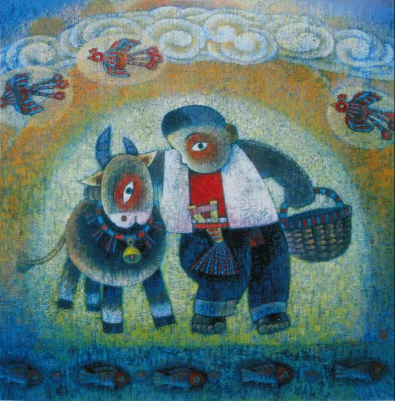 1973年開始自學美術(shù)并業(yè)余創(chuàng)作,專國畫兼及水粉、漫畫、剪紙。數(shù)十年來廣采博收,上溯遠古巖畫、畫像磚、石、帛畫、洞窟壁畫、院體工筆以及民間剪紙、泥塑,面塑、年畫;橫向上油畫、版畫、裝飾、現(xiàn)代設(shè)計乃至西方藝術(shù)皆有涉獵吸收,融匯貫通,形成了一種既富傳統(tǒng)民族特色、鄉(xiāng)土味濃郁,又極具現(xiàn)代感的、自成一格的個人風格。