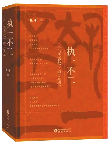 讓古籍里的文字活起來,離不開一項項具體而又有創(chuàng)造性的工作?!秷?zhí)一不二:〈呂氏春秋〉的詩筆記》(研究出版社出版)一書選擇《呂氏春秋》這樣一部先秦重要典籍作為切入點。呂不韋在秦莊襄王、秦王嬴政時期為相13年,根據(jù)《史記》記載,為了讓秦更強大,呂不韋招食客三千人,“使其客人人著所聞,集論以為八覽、六論、十二紀(jì),二十余萬言,以為備天地萬物古今之事,號曰《呂氏春秋》”。書成之后,呂不韋命人將書“布咸陽市門,懸千金其上,延諸侯游士賓客有能增損一字者予千金”,“一字千金”的典故由此而來,可見呂不韋對此書思想和文字的自信。