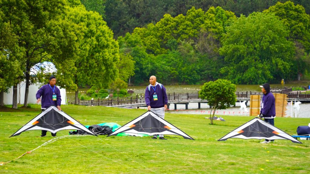 4月24日,運(yùn)動風(fēng)箏參賽選手正在做賽前準(zhǔn)備。新華社記者龔聯(lián)康攝