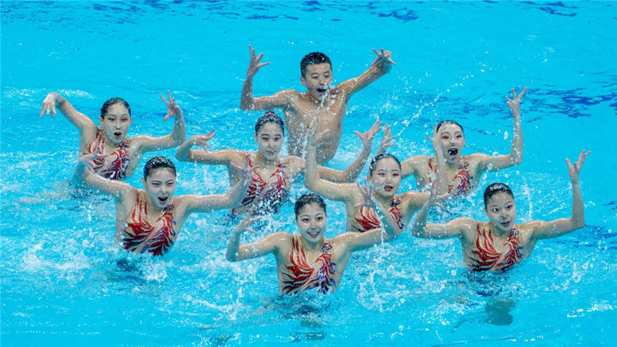 在巴黎奧運會上,男選手將被允許參加花游集體項目較量,每隊最多可以有兩名男選手。本屆冠軍賽也執(zhí)行了新規(guī)則,16歲的小將楊順誠是北京隊8名選手中唯一的男選手。北京隊隊長張嘉雯表示:“因為我們男孩也是第一次上集體(項目),有時候節(jié)奏會不穩(wěn)定,但我覺得男孩的加入能讓我們的團隊更有活力,讓我們的訓(xùn)練中充滿了歡樂,有時候會覺得很累的訓(xùn)練也變得輕松一些。”