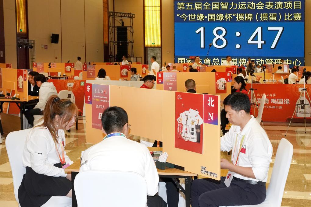 這是摜蛋項(xiàng)目首次進(jìn)入智運(yùn)會,比賽設(shè)男子雙人賽、女子雙人賽、混合雙人賽3個競賽項(xiàng)目,執(zhí)行國家體育總局棋牌運(yùn)動管理中心審定的《競技摜蛋競賽規(guī)則(試行)》,分預(yù)賽、決賽兩個階段進(jìn)行。預(yù)賽采用場分制瑞士積分編排賽,進(jìn)行7輪比賽,決賽采用豪威爾制,進(jìn)行9輪比賽。比賽均采用計(jì)算機(jī)預(yù)制比賽用牌,全場同牌,以得分決定名次。