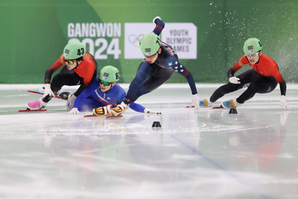 決賽進(jìn)行到最后一圈的最后一個(gè)彎道時(shí),美國選手第一個(gè)沖線,菲律賓選手在內(nèi)道想要超越張柏浩時(shí)失去重心,摔倒時(shí)也帶倒了張柏浩。這使得原本排在第四名的張心喆第二個(gè)沖過了終點(diǎn),他在冰刀過線時(shí)還回頭看向了隊(duì)友。