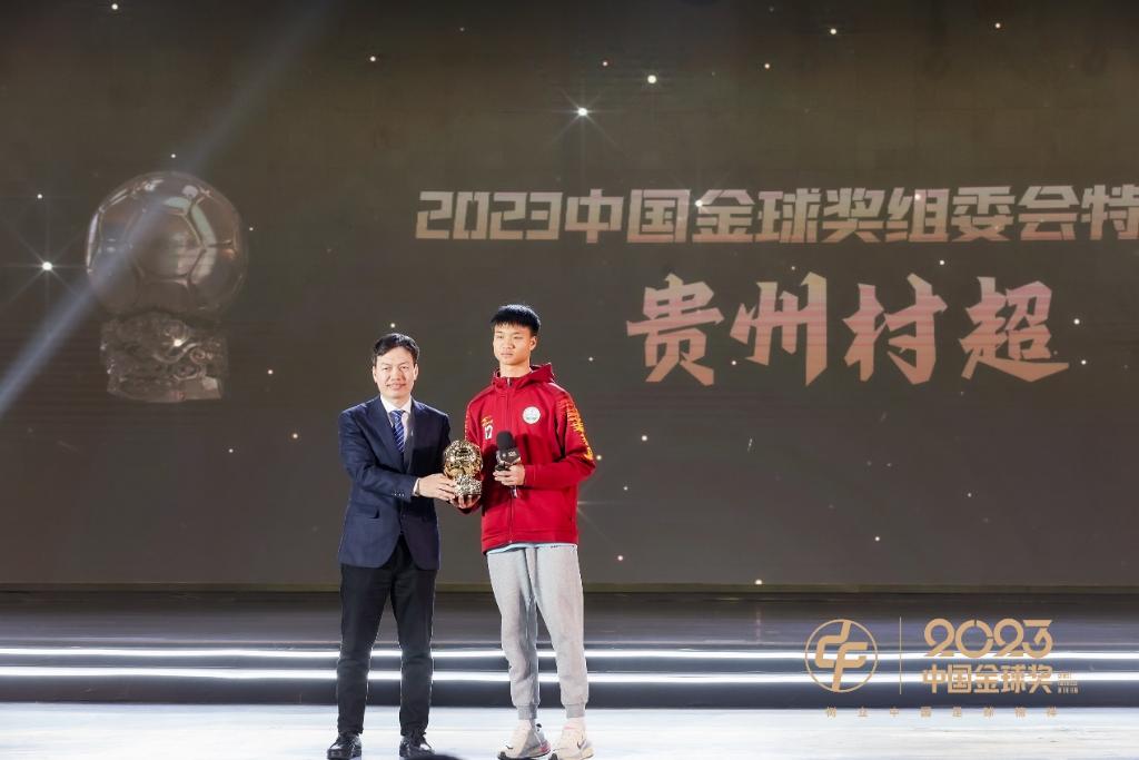 在2023年火爆出圈的貴州“村超”獲評中國金球獎組委會特別獎,并受邀在頒獎典禮解讀“村超”出圈密碼并發(fā)布2024“村超”賽事規(guī)劃。此外,中國足球裁判員馬寧、傅明、周飛、張鋮組成的裁判組執(zhí)法了卡塔爾男足亞洲杯決賽,是中國裁判組歷史上首次主哨該項(xiàng)賽事的決賽,同樣被授予組委會特別獎。
