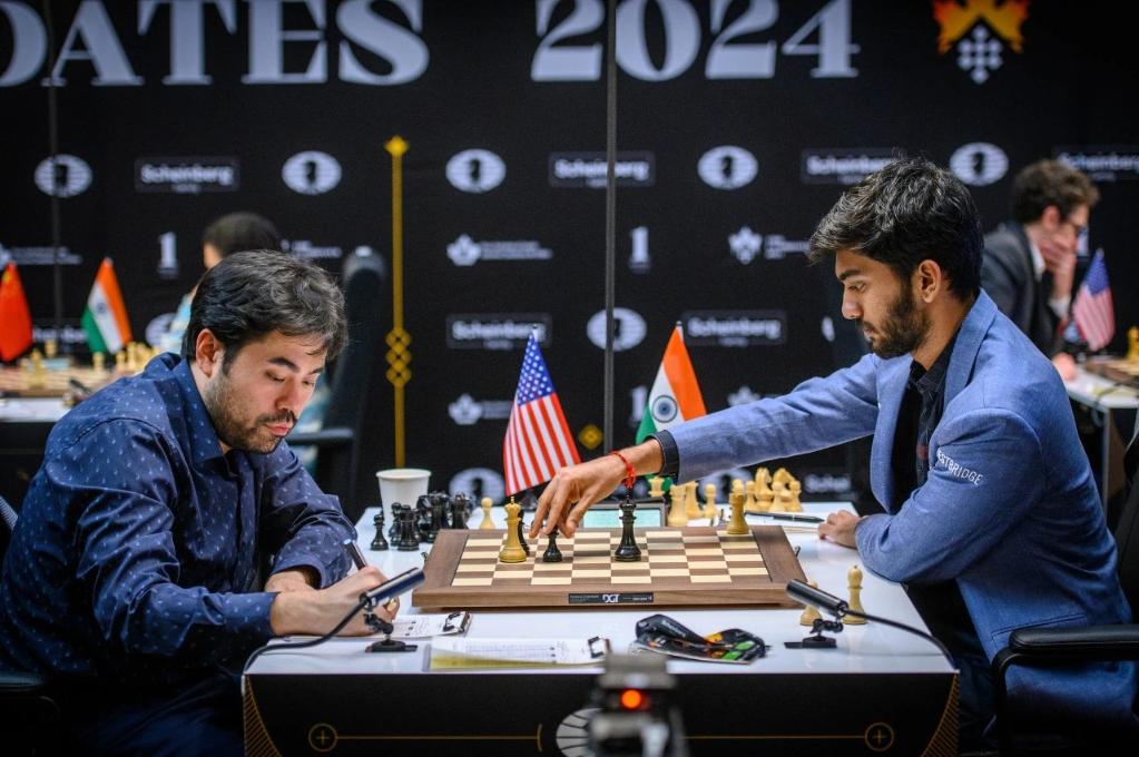 男子組方面,13輪過(guò)后形成第一集團(tuán)的四人在最后一輪捉對(duì)廝殺,以0.5分優(yōu)勢(shì)領(lǐng)先其余3人的印度新星古克什對(duì)戰(zhàn)美國(guó)棋手中村光,另一位美國(guó)棋手卡魯阿納對(duì)陣俄羅斯棋手涅波姆尼亞奇。最終兩組對(duì)局均以和棋告終,古克什積9分奪冠。