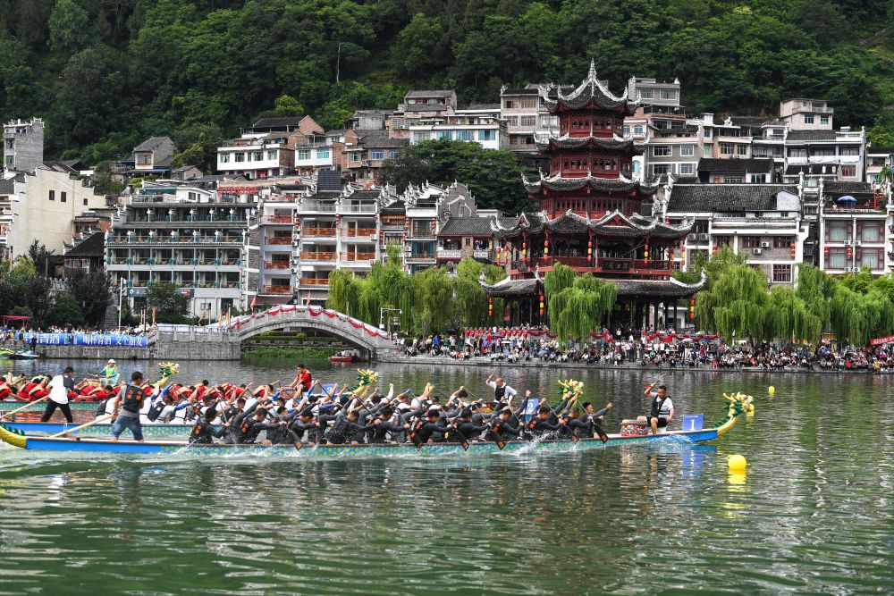 賽事期間還將舉行鎮(zhèn)遠(yuǎn)縣第四十屆賽龍舟文化節(jié),觀眾和游客可體驗(yàn)非遺集市、佛山·黔東南名特優(yōu)產(chǎn)品展銷會、“千人搶鴨子”等文娛活動。