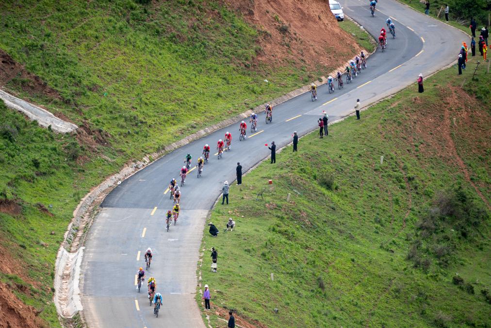 7月9日,參賽車手在比賽中騎行。新華社發(fā)(潘彬彬攝)