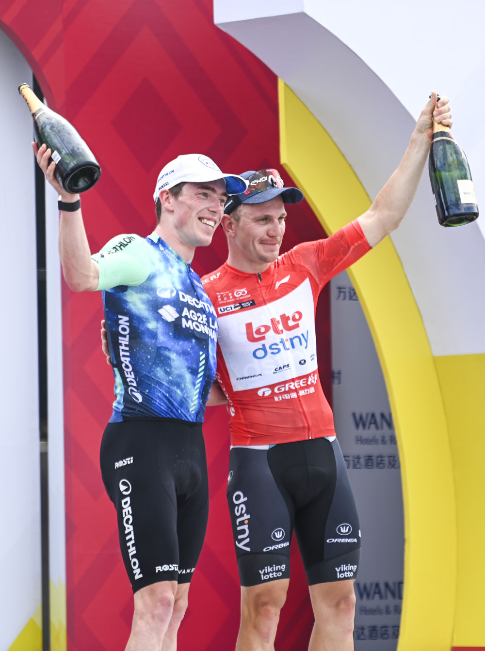 10月15日,萊昂內(nèi)爾·塔米尼奧(右)與斯坦·德伍爾夫在頒獎(jiǎng)儀式上慶祝。新華社記者 曹祎銘 攝