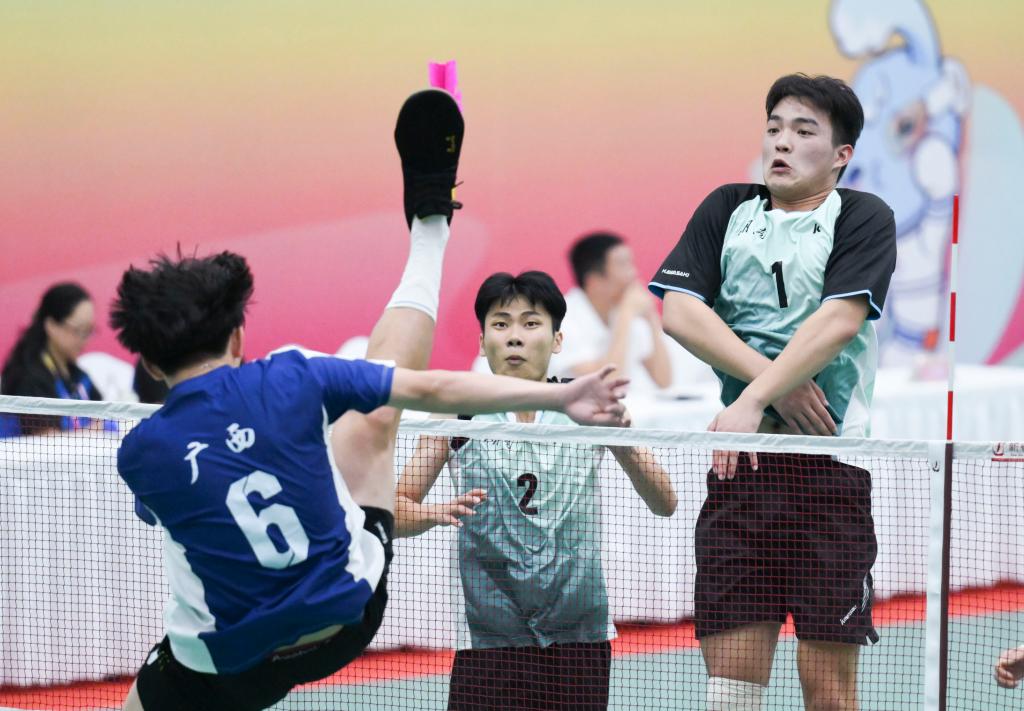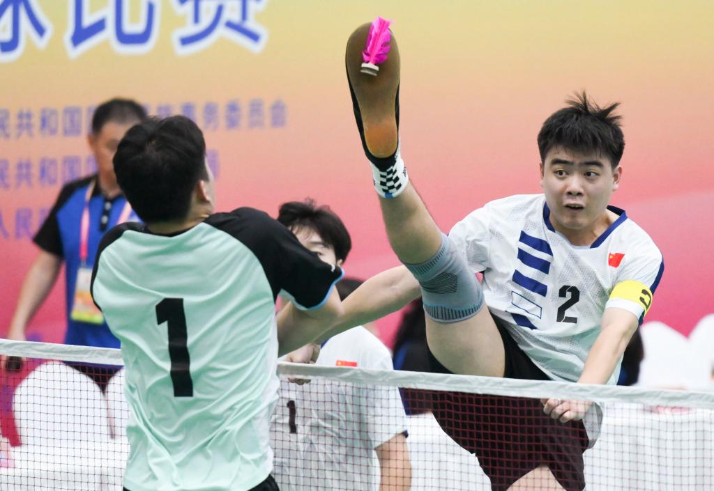 23日,第十二屆全國少數(shù)民族傳統(tǒng)體育運(yùn)動(dòng)會(以下簡稱“運(yùn)動(dòng)會”)毽球項(xiàng)目開賽。場地上,運(yùn)動(dòng)員們雙腿如雙臂般靈活,時(shí)而飛腿將毽球橫掃過網(wǎng),時(shí)而腳底板扣球絕殺,時(shí)而高抬腿一記倒鉤讓對手措手不及……