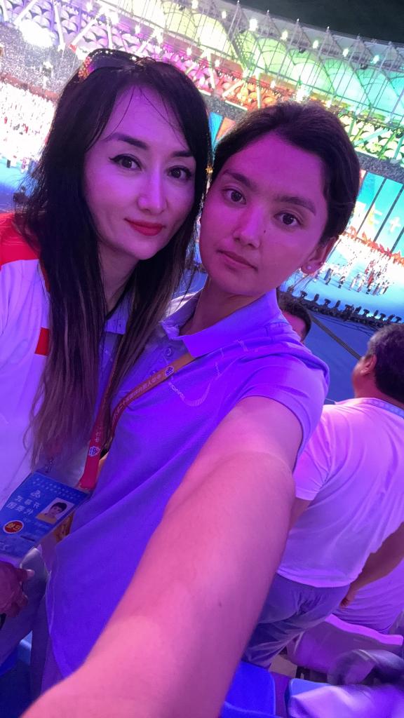 洪吐斯汗(左)和古麗阿亞提在開幕式中。受訪者供圖