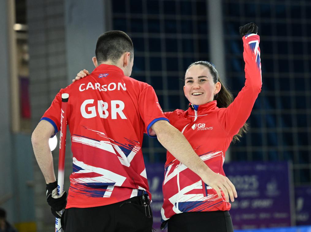 冰壺混雙項目是本屆大冬會首次設立的比賽項目,吸引了來自8個代表團的隊伍參賽。決賽在英國隊和德國隊之間展開。英國組合芒羅和卡森表現(xiàn)出色,以10:8戰(zhàn)勝德國隊,奪得歷史首金。