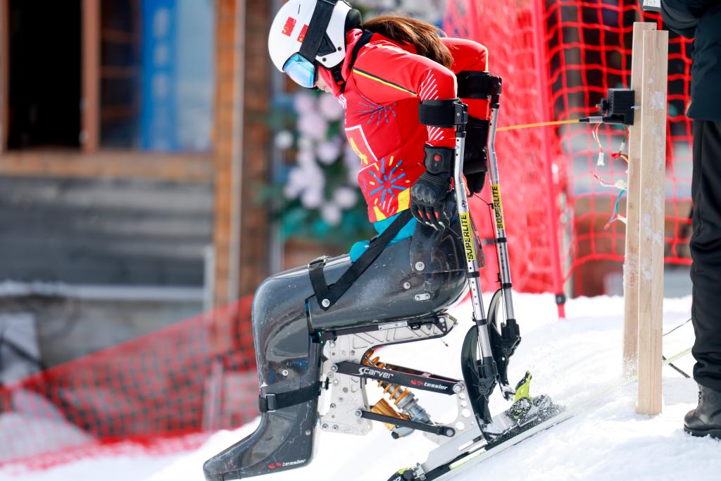3月5日,遼寧省代表隊選手劉思彤在女子滑降坐姿組比賽中。當(dāng)日,中華人民共和國第十二屆殘疾人運動會暨第九屆特殊奧林匹克運動會(簡稱“全國殘?zhí)貖W會”)高山滑雪比賽在烏魯木齊拉開帷幕。新華社記者 王菲 攝