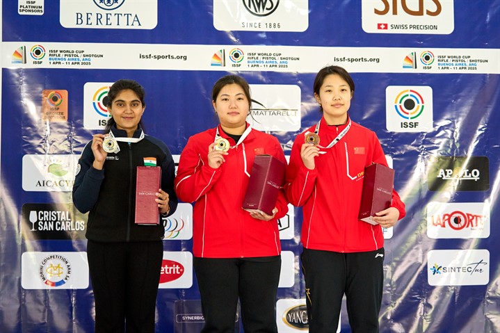 孫瑜潔(中)、埃莎·辛格(左)和馮思璇在頒獎儀式上。 當(dāng)日還進(jìn)行了男、女飛碟雙向比賽,美國隊成為最大贏家,將兩金全部收入囊中。6日將進(jìn)行男子10米氣步槍比賽,盛李豪持RPO名額參賽。 圖片:國際射擊聯(lián)合會官網(wǎng) (責(zé)任編輯:蔡文斌) |
