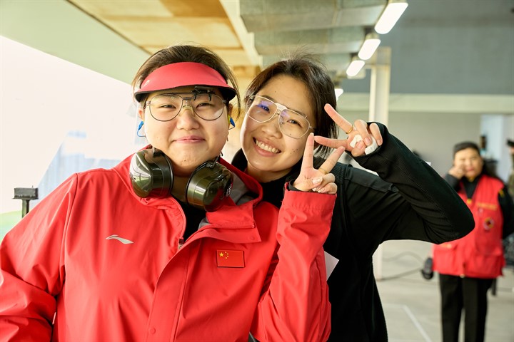 孫瑜潔(左)和馮思璇在賽后。 本站世界杯中國隊派出39名隊員參加步手槍項目的比賽,其中包括盛李豪等奧運冠軍。前兩個比賽日中,中國隊收獲一金一銀。 女子25米運動手槍項目中國隊共有5位選手出戰(zhàn),資格賽階段分別排名四、六、八、十和十二位。根據(jù)國際射聯(lián)規(guī)則,每隊至多只能有三個正式名額,另兩位選手持RPO名額,只能參加資格賽階段比賽。資格賽排在第六和第八的姚千尋和祖鵬雯是RPO名額選手,因此排名第十的孫瑜潔得以和排名第四的馮思璇攜手晉級決賽階段。