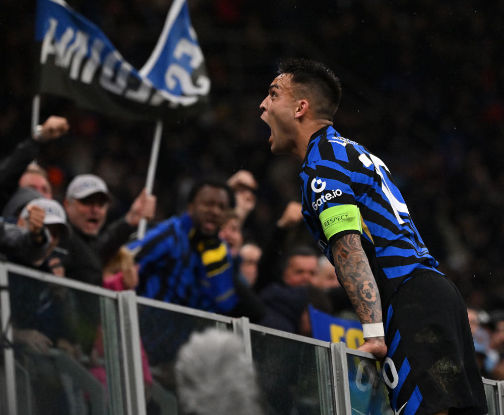 4月16日,國際米蘭隊球員勞塔羅·馬丁內(nèi)斯慶祝進球。新華社發(fā)(阿爾貝托·林格利亞攝)