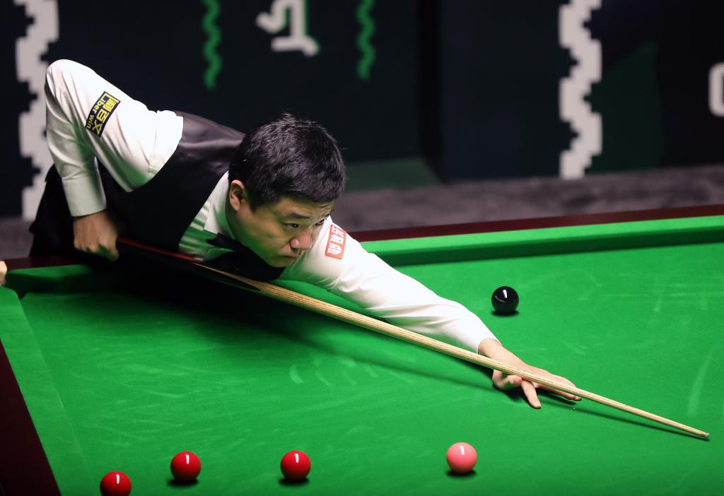 8月12日,趙心童在比賽中。新華社記者 王東震 攝 首度亮相本項賽事,趙心童展現(xiàn)出極佳的狀態(tài),在9局5勝制的比賽中僅耗時55分鐘便以5:0擊敗英格蘭選手史蒂文·霍爾沃思,晉級16強。五局比賽中,趙心童每局都有單桿超90分的出色表現(xiàn),更是在第二局中打出單桿132分的高分。 “我今天這場發(fā)揮得還不錯,基本上每一局都有比較不錯的單桿?!壁w心童在賽后說,“這是我第一次來到沙特打這個比賽。作為第一次來講,我覺得(表現(xiàn))還是挺不錯的,挺享受這個舞臺的?!?/p> 在與蘇格蘭選手斯蒂芬·馬奎爾的比賽中,丁俊暉克服開場慢熱的狀態(tài),在1:2落后的情況下,連贏4局,以5:2逆轉(zhuǎn)取勝。