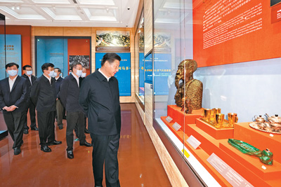 7月16日,中共中央總書記、國(guó)家主席、中央軍委主席習(xí)近平在中央禮品文物管理中心參觀“友好往來(lái) 命運(yùn)與共——黨和國(guó)家領(lǐng)導(dǎo)人外交活動(dòng)禮品展”。新華社記者 李學(xué)仁 攝