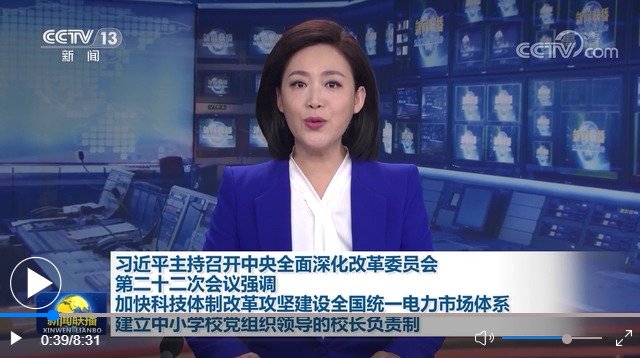 加快科技體制改革攻堅(jiān)建設(shè)全國統(tǒng)一電力市場(chǎng)體系 建立中小學(xué)校黨組織領(lǐng)導(dǎo)的校長負(fù)責(zé)制