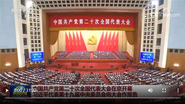 習(xí)近平代表第十九屆中央委員會向大會作了題為《高舉中國特色社會主義偉大旗幟 為全面建設(shè)社會主義現(xiàn)代化國家而團結(jié)奮斗》的報告。習(xí)近平指出,中國共產(chǎn)黨第二十次全國代表大會,是在全黨全國各族人民邁上全面建設(shè)社會主義現(xiàn)代化國家新征程、向第二個百年奮斗目標(biāo)進軍的關(guān)鍵時刻召開的一次十分重要的大會。大會的主題是:高舉中國特色社會主義偉大旗幟,全面貫徹新時代中國特色社會主義思想,弘揚偉大建黨精神,自信自強、守正創(chuàng)新,踔厲奮發(fā)、勇毅前行,為全面建設(shè)社會主義現(xiàn)代化國家、全面推進中華民族偉大復(fù)興而團結(jié)奮斗。