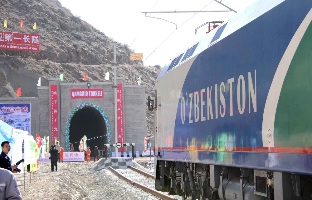中鐵隧道集團(tuán)承擔(dān)的烏茲別克斯坦安格連-帕普鐵路卡姆奇克隧道全隧貫通(2016年2月27日攝)。新華社記者 沙達(dá)提 攝