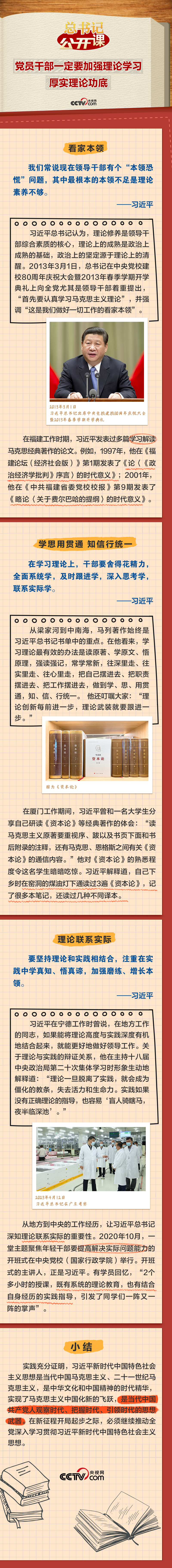 習近平總書記高度重視對黨員干部理論學習能力的培養(yǎng)。他說:“黨員干部一定要加強理論學習、厚實理論功底,自覺用新時代黨的創(chuàng)新理論觀察新形勢、研究新情況、解決新問題,使各項工作朝著正確方向、按照客觀規(guī)律推進?!边@一期《總書記“公開課”》聚焦總書記關于理論學習的深邃思考,讓我們一起領悟。