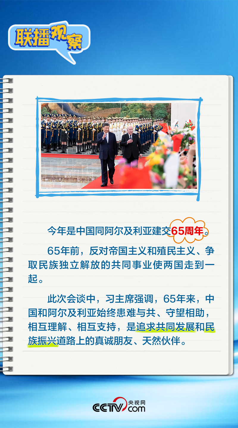 會(huì)談中,習(xí)主席特別提到,今年是中國(guó)向阿爾及利亞派遣醫(yī)療隊(duì)60周年,并稱贊此舉樹立了“中阿友誼的豐碑”。中阿傳統(tǒng)友誼深厚,兩國(guó)始終相互尊重、平等相待、彼此支持,締造了一段段友好交往的佳話。