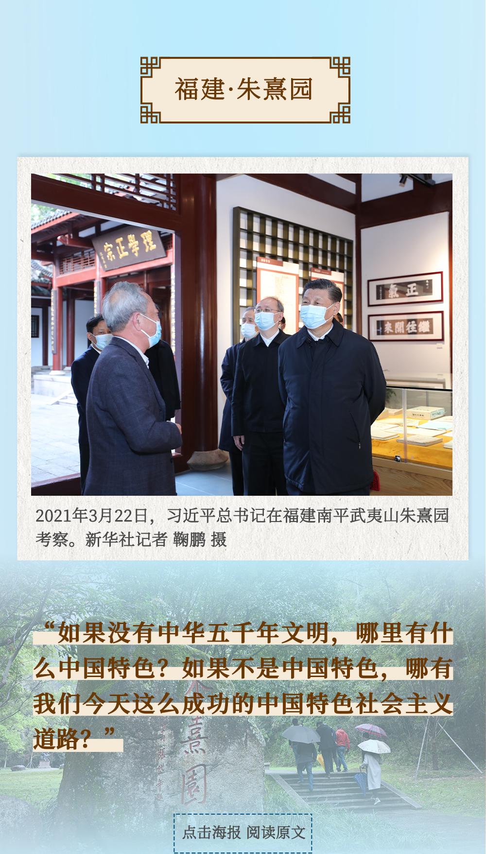 從四川三蘇祠到河南殷墟遺址,從山東孔府、孔子研究院到湖南大學(xué)岳麓書院,從甘肅嘉峪關(guān)關(guān)城到福建朱熹園,從山西云岡石窟到廣東潮州古城……考察文化遺產(chǎn)、探尋文明根脈,帶著深厚的歷史感,習(xí)近平總書記的“文化足跡”遍及全國(guó)。
