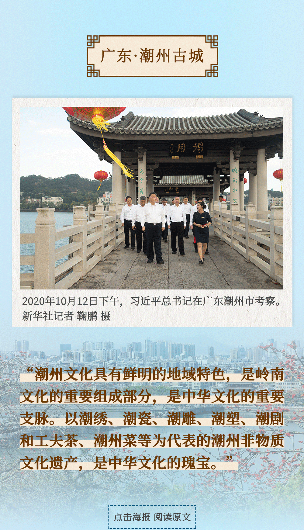 近期,新華社開設(shè)了“習(xí)近平的文化足跡”欄目,梳理了黨的十八大以來(lái)習(xí)近平總書記考察調(diào)研過(guò)的部分重要文化遺產(chǎn)遺跡,回顧總書記提出的重要論斷、重要觀點(diǎn),展現(xiàn)當(dāng)?shù)匚拿}傳承、文化建設(shè)的生動(dòng)實(shí)踐。