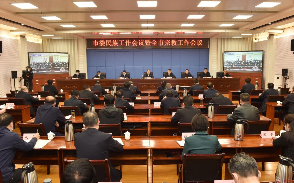 3月21日,市委民族工作會(huì)議暨全市宗教工作會(huì)議召開。市委書記朱曉東出席并講話,市委副書記、市長李建國主持。市委副書記、政法委書記郭奔勝,市人大常委會(huì)主任王珍,市領(lǐng)導(dǎo)劉卓良、溫建軍、張敏、張宇光等出席。市委統(tǒng)戰(zhàn)工作領(lǐng)導(dǎo)小組及市宗教工作領(lǐng)導(dǎo)小組成員單位負(fù)責(zé)人,市人大常委會(huì)民僑工委、市政協(xié)民宗委負(fù)責(zé)同志參加。會(huì)議以視頻形式開到縣級(jí)。