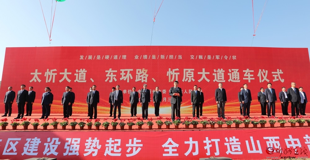 9月30日,我市舉行太忻大道、東環(huán)路、忻原大道通車儀式,市委書記朱曉東出席儀式并宣布太忻大道、東環(huán)路、忻原大道通車。市委副書記、市長李建國主持儀式。市委副書記、政法委書記郭奔勝,市人大常委會主任王珍,市政協(xié)主席范建民,山西建投集團公司副董事長、總經(jīng)理徐忠和,市領(lǐng)導劉卓良、趙新年、張文偉、溫建軍、張敏、張宇光、史紅波、賈玲香、崔崢嶺、李碩、王建峰、張文斌,市政府秘書長張艮生,中鐵十七局集團公司和中建三局集團公司相關(guān)負責人出席。副市長耿鵬鵬介紹項目建設情況。