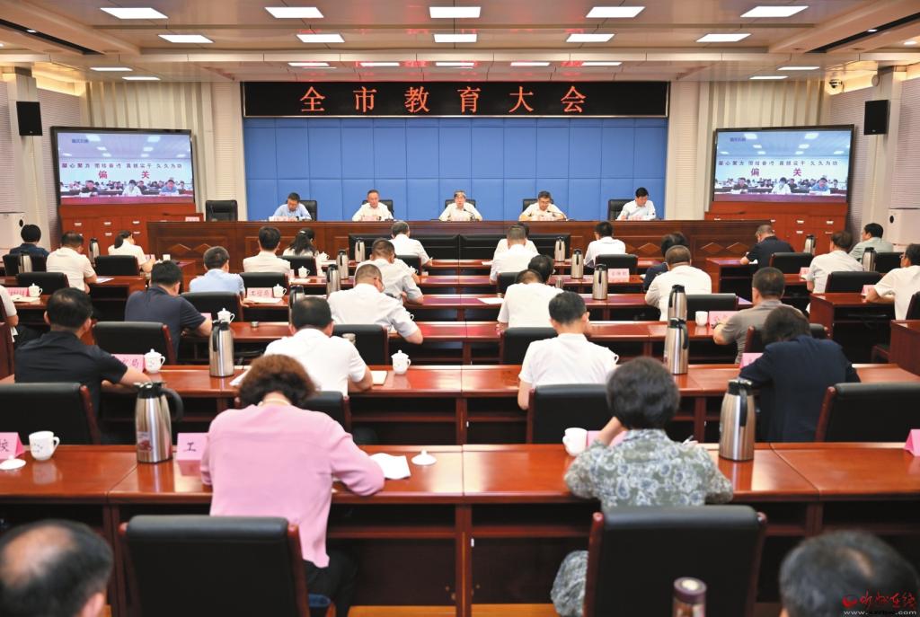 會(huì)議充分肯定近年來全市教育事業(yè)發(fā)展取得的成績(jī),對(duì)教育強(qiáng)市建設(shè)各項(xiàng)重點(diǎn)工作作出全面部署。會(huì)議指出,要堅(jiān)持不懈用習(xí)近平新時(shí)代中國(guó)特色社會(huì)主義思想鑄魂育人,一體化推進(jìn)大中小學(xué)思想政治教育,培養(yǎng)德智體美勞全面發(fā)展的社會(huì)主義建設(shè)者和接班人。要堅(jiān)持以人民為中心發(fā)展教育,推動(dòng)義務(wù)教育優(yōu)質(zhì)均衡發(fā)展,促進(jìn)學(xué)前教育普及普惠和高中階段學(xué)校多樣化發(fā)展,前瞻性優(yōu)化區(qū)域教育資源配置,持續(xù)鞏固“雙減”成果,不斷提升基礎(chǔ)教育服務(wù)質(zhì)量。要統(tǒng)籌實(shí)施科教興市、人才強(qiáng)市、創(chuàng)新驅(qū)動(dòng)發(fā)展戰(zhàn)略,加快構(gòu)建現(xiàn)代職業(yè)教育體系,增強(qiáng)高等教育綜合實(shí)力,培育壯大科技創(chuàng)新力量,不斷塑造高質(zhì)量發(fā)展新動(dòng)能新優(yōu)勢(shì)。要強(qiáng)化師德師風(fēng)建設(shè),優(yōu)化完善教師管理體制,厚植尊師重教社會(huì)風(fēng)尚,大力培養(yǎng)鍛造一支師德高尚、業(yè)務(wù)精湛、結(jié)構(gòu)合理、充滿活力的高素質(zhì)專業(yè)化教師隊(duì)伍。要進(jìn)一步深化教育領(lǐng)域綜合改革,進(jìn)一步擴(kuò)大教育開放合作交流,進(jìn)一步建設(shè)全民終身學(xué)習(xí)的學(xué)習(xí)型社會(huì),充分激發(fā)教育高質(zhì)量發(fā)展的生機(jī)活力。