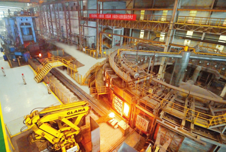 在環(huán)形爐控制室,俯瞰窗外火熱的生產(chǎn)現(xiàn)場(chǎng),只見(jiàn)鋸切、加熱、預(yù)成型、成型、軋制、壓彎各工序井然有序,智能高效的生產(chǎn)場(chǎng)景令參觀者嘖嘖稱贊。