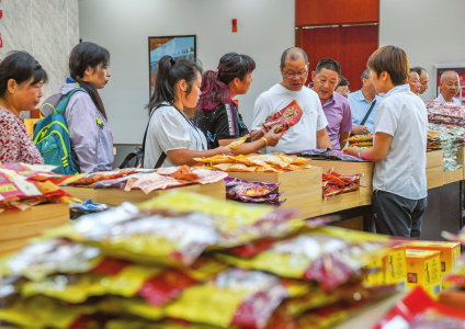 在平遙古城南大街上的一家平遙牛肉經(jīng)銷店,記者看到原味、五香、麻辣等多系列、多口味的產(chǎn)品,聞香而來(lái)的游客正精心挑選著心儀的產(chǎn)品。