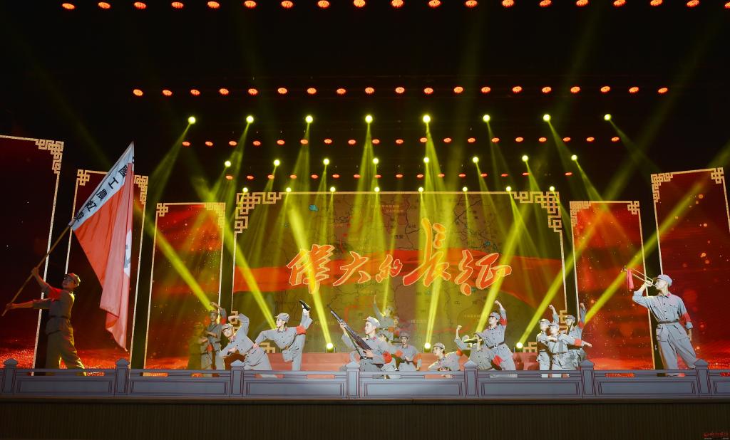 晚會現(xiàn)場。馮曉磊 攝 晚會由中共忻州市委統(tǒng)戰(zhàn)部主辦、忻州市新的社會階層人士聯(lián)合會承辦,整臺演出喜慶熱烈、精彩紛呈、主題突出,節(jié)目形式豐富多樣,歌曲演唱、情景朗誦、戲曲舞蹈、二人臺等交相輝映,通過不同的藝術(shù)形式生動展現(xiàn)了忻州人展望未來、追夢太忻,共筑中國夢、建設(shè)美麗忻州的喜人成果,抒發(fā)了對偉大祖國的摯愛之情。 氣勢磅礴的合唱伴舞《領(lǐng)航》拉開了演出的序幕。歌伴舞《忻州古城等你來》帶你走進(jìn)千年古城、走進(jìn)詩情畫意的“康養(yǎng)忻州”,領(lǐng)略晉北文化;音詩畫朗誦《奮進(jìn)新征程 建功新時代》表達(dá)了各民主黨派精誠合作,為全方位推動忻州高質(zhì)量發(fā)展凝聚強(qiáng)大政治力量的信心和決心;歌曲《太忻情》帶領(lǐng)大家聆聽忻州全方位推動高質(zhì)量發(fā)展的鏗鏘步伐,感受如火如荼、方興未艾的建設(shè)場面;《擼起袖子加油干》重溫了習(xí)近平總書記殷殷囑托;河曲二人臺《歡天喜地迎盛會》讓我們堅(jiān)信即將召開的二十大必將帶領(lǐng)全國人民從勝利走向勝利;情景劇《在正道上行》再現(xiàn)了民營企業(yè)家有大愛、有擔(dān)當(dāng)、無私奉獻(xiàn)助力鄉(xiāng)村振興和經(jīng)濟(jì)社會全面發(fā)展的情景,讓在場的每個人都深受感染;《騰飛吧,晉龍》《風(fēng)雪長征》《山丹丹開花紅艷艷》《親吻祖國》《紅旗飄飄》《為祖國干杯》……一首首歌曲昂揚(yáng)向上,一段段舞蹈剛勁有力,令人精神振奮、激情滿懷,唱響了朝氣蓬勃、同心追夢的時代旋律,唱出了全市人民熱愛家鄉(xiāng)、建設(shè)家鄉(xiāng)的共同情懷,表達(dá)了忻州兒女奮進(jìn)新征程、建功新時代的壯志豪情。